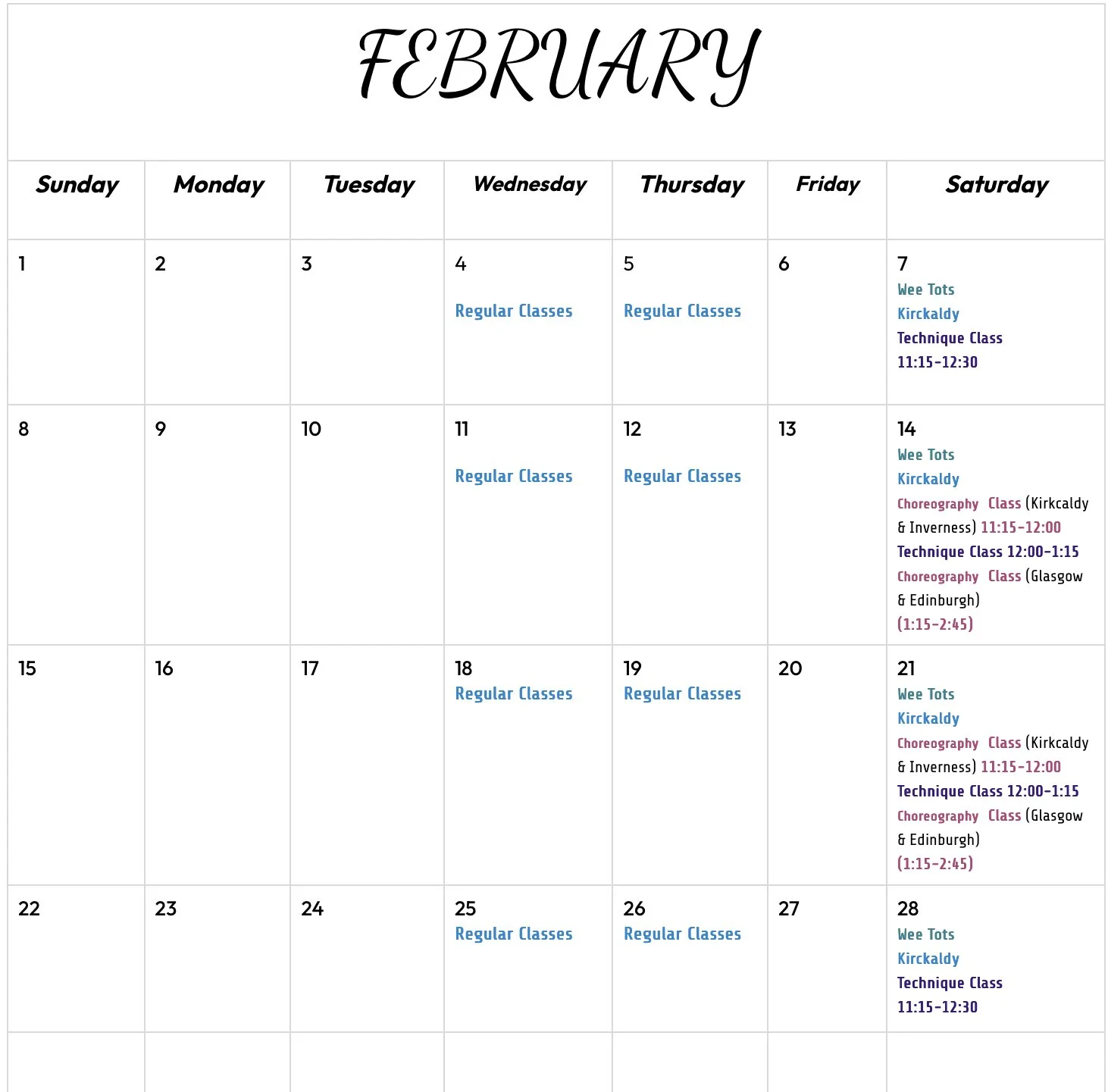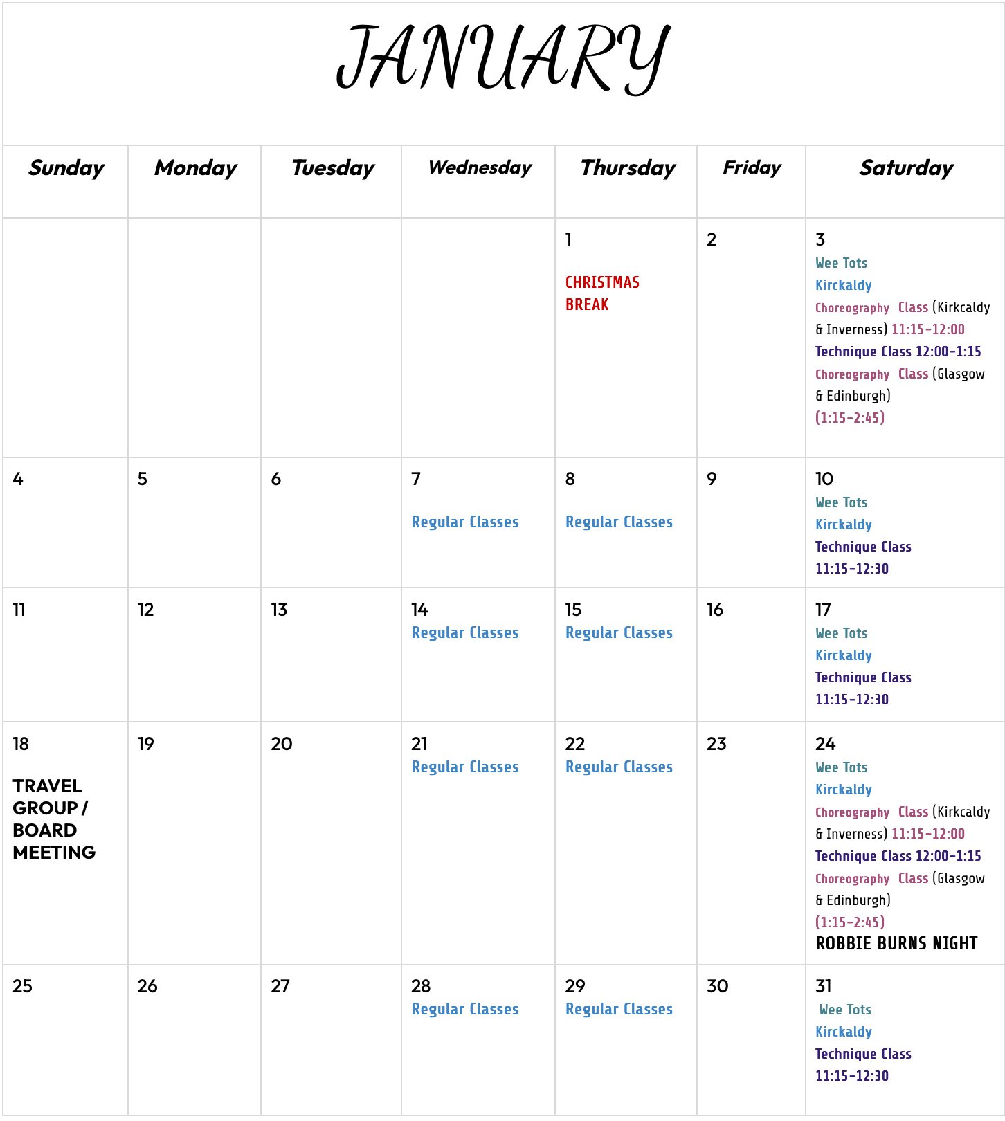 Our Dance Schedule….