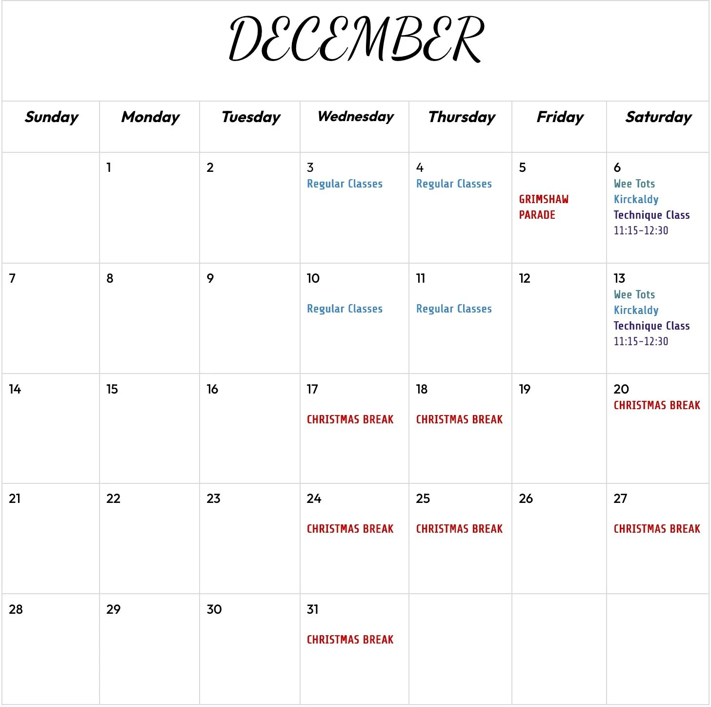 Our schedule shows all our class times, special events happening within our club, upcoming fundraisers & upcoming competitions